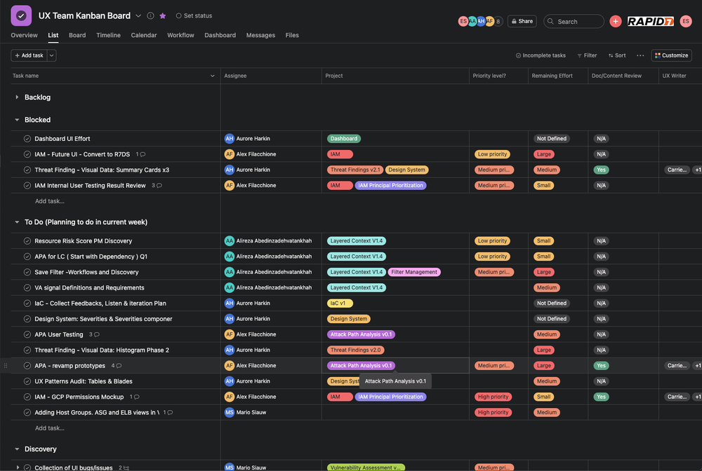 Prior to Blackwell, I led UX teams at Rapid7, where I worked across on-prem and cloud-based Vulnerability Management, Cloud Security, and Application Security product experiences.